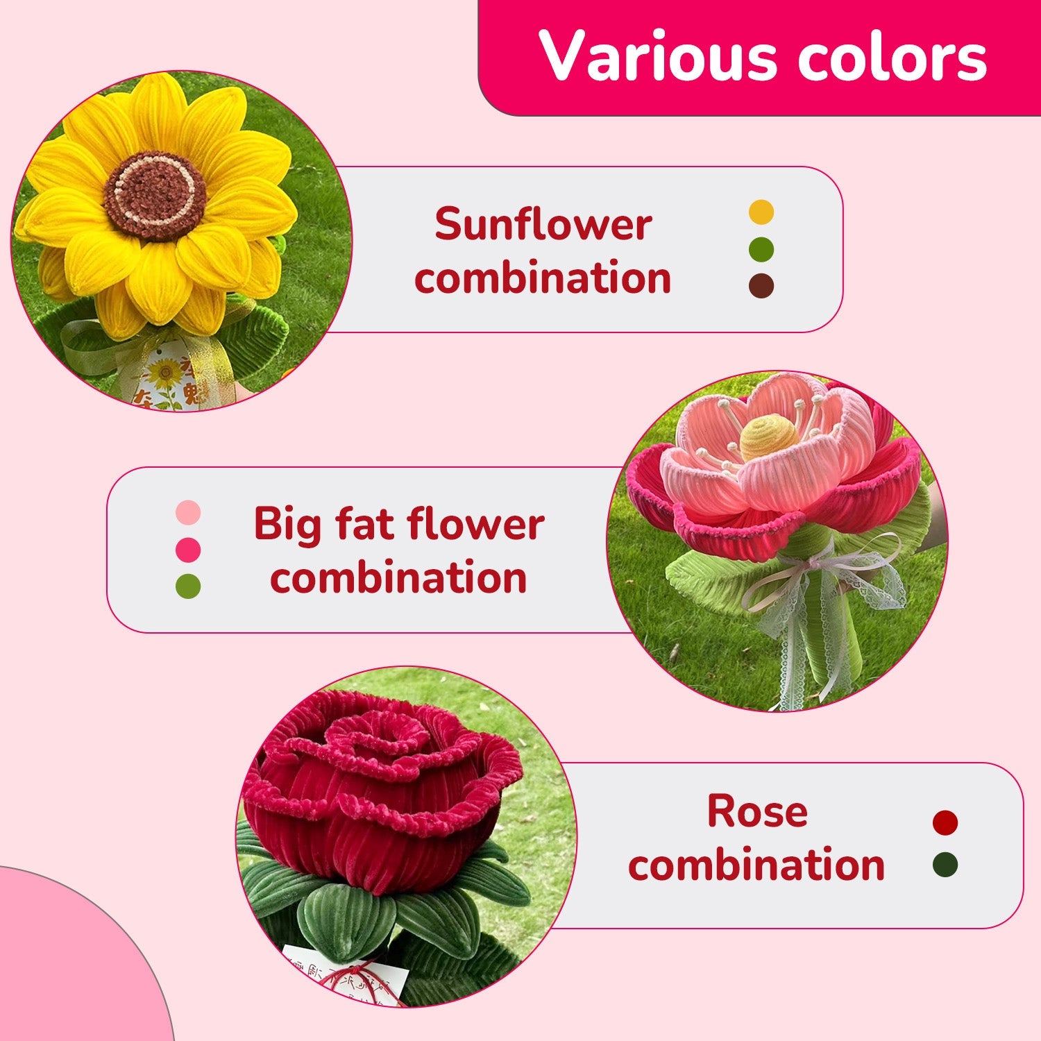 Featuring a specially curated mix of traditional Christmas colors alongside unique combinations including Sunflower, Rose, and Big Fat Flower designs - all maintaining consistent 6mm diameter for uniform crafting.