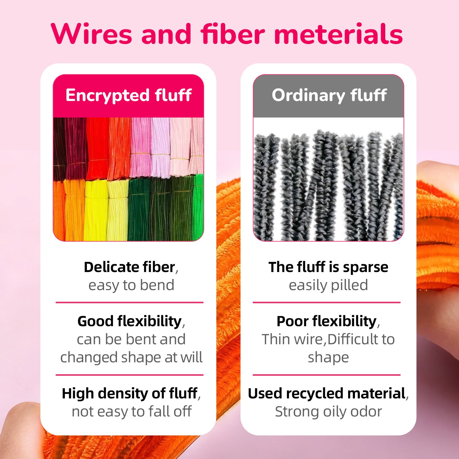 Unlike ordinary sparse fluff that pills and sheds, our high-density encrypted fluff wrapped around flexible wire provides superior shape retention without odor, shedding or deformation.