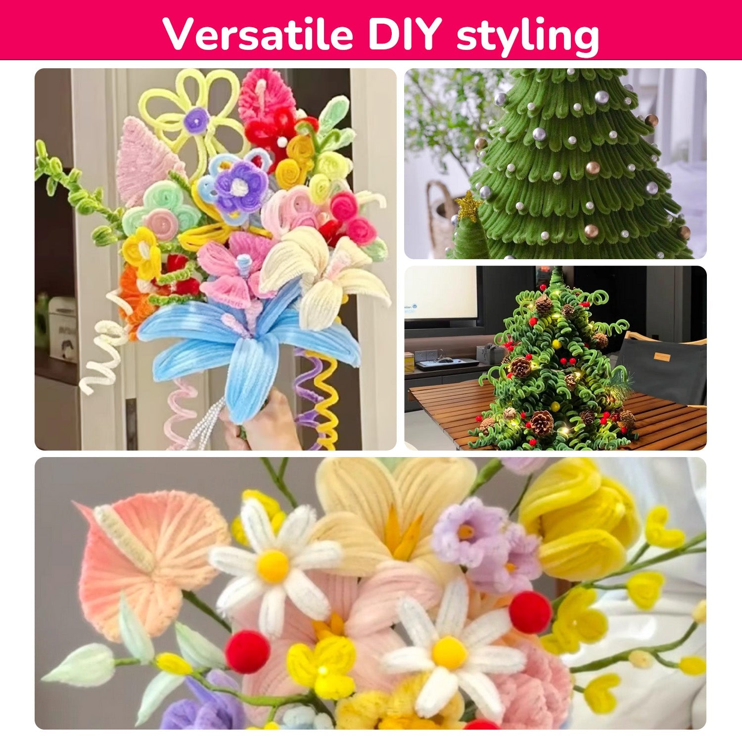 Crafted to the perfect 12-inch length and 6mm diameter, these pipe cleaners easily bend into snowflakes, reindeer, Christmas trees and candy canes - maintaining their shape for lasting holiday decorations.