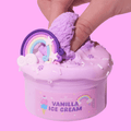 Handcrafted with a decorative purple clay vanilla ice cream topping, candy slices, and rainbow-colored eco-friendly rubber charms, this slime brings a fun visual appeal. The candy charms and rainbow decorations add depth to your experience, making it both visually and sensorially satisfying. The Vanilla Cashmere butter slime base ensures that the slime remains smooth and silky, giving you a long-lasting, creamy texture that never loses its softness or stretchability.